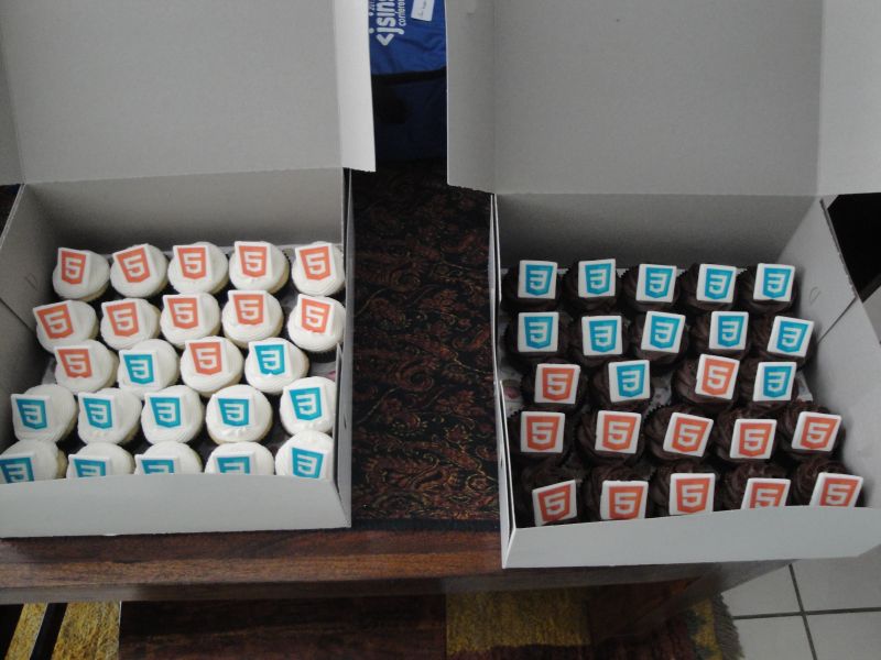 A JSinSA conference wouldn't be complete without cupcakes for everyone. This year we went for branded HTML5 and CSS3 cupcakes from a local supplier.