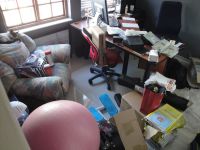 Day before, and yes, my office has looked worse. Poor @BadLassie (legendary conference dog) is trapped under my desk in this photo.